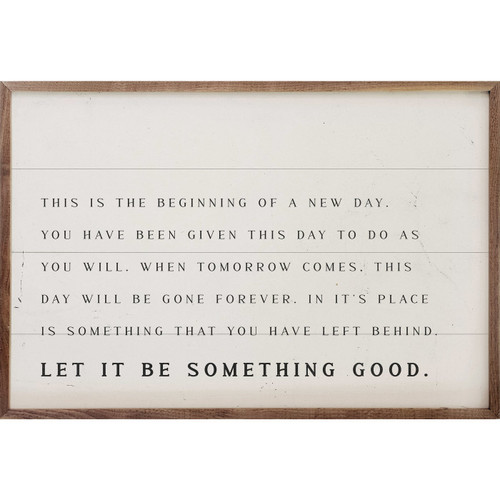 This Is The Beginning Of A New Day. You have been given this day to do as you will. When tomorrow comes, this day will be gone forever. In it's place is something that you have left behind. Let It Be Something Good on Wood Framed Sign