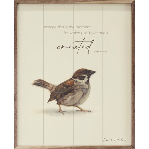 Perhaps This Is The Moment For Which You Have Been Created - Ester 4:14 with sparrow bird - Art print by Bonnie Mohr